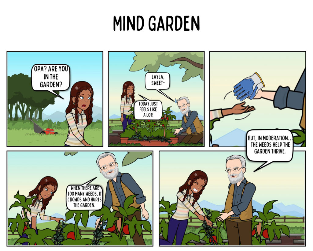 Using a digital comic paired well with my chosen topic because of the accessibility and ability to communicate emotions and ideas visually. The garden metaphor started with my personal interest in gardening and then it became abundantly clear that it connects to balance, frequent care, growth, and ongoing effort. Then, I quickly realized this aligns well with SEL principles.