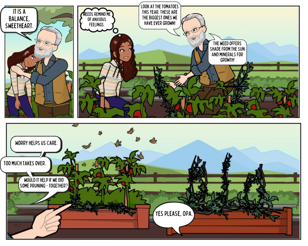 This educational resource is intended to support a social-emotional learning (SEL) lesson for intermediate to middle school students. The comic shines a light on anxiety and explores how anxiety can be important in certain ways for navigating life. The story follows a young girl coming home from school feeling anxious and connecting with her Opa in the garden. Her Opa offers comfort and a new perspective on Layla’s situation. Additionally, the comic offers ways to help regulate negative emotions and learn from lived experiences.